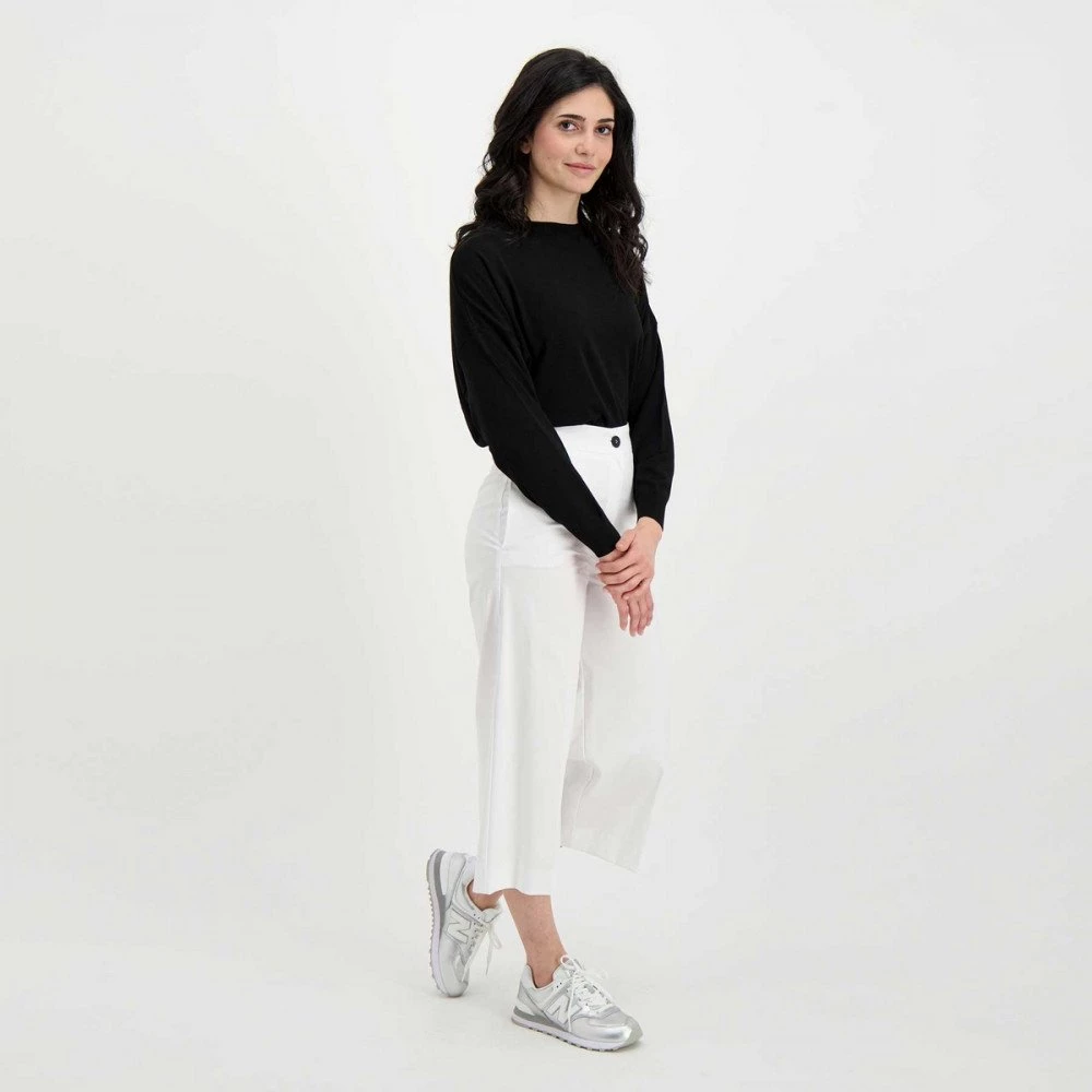 I pantaloni Emme Marella Grim da donna sono il modello crop dalla linea dritta, realizzati in cotone stretch.
