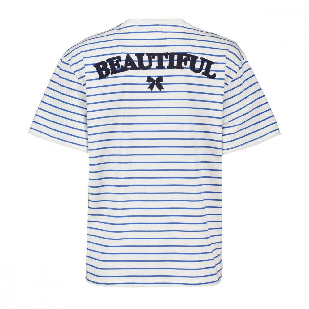 La t-shirt Emme Marella Zulia da donna rivisita l’iconico modello dal design a righe in stile navy, con l’ampia scritta gommata “Beautiful” sul retro, per un tocco vivace e originale.