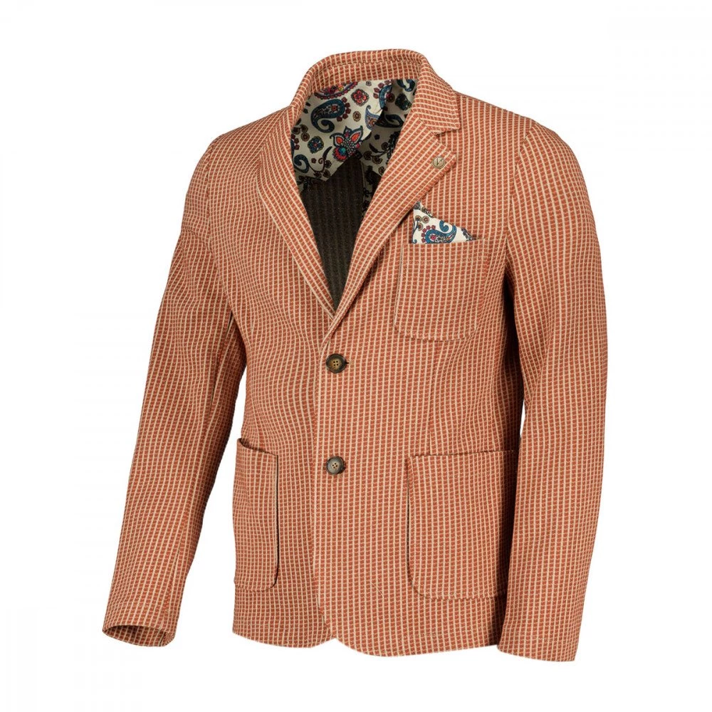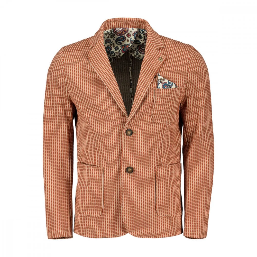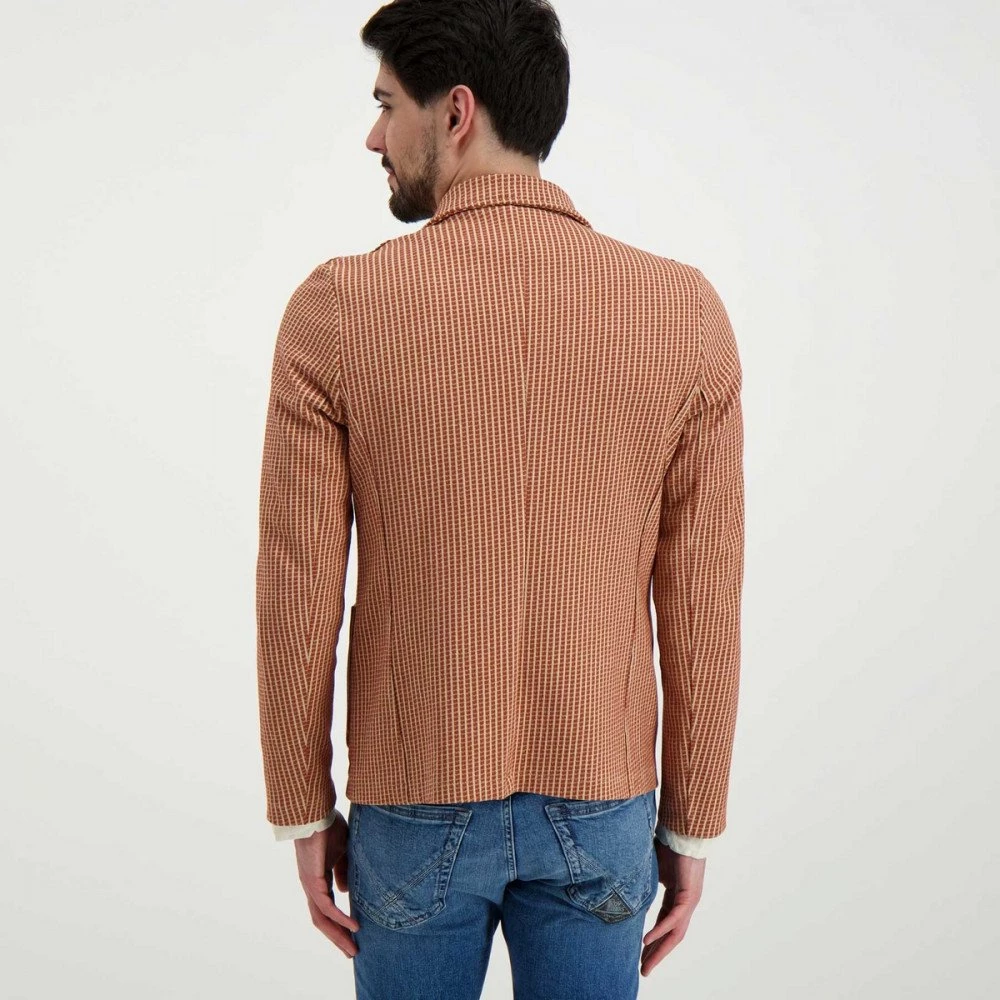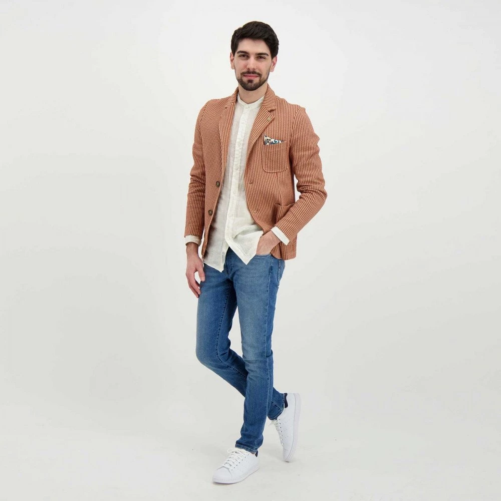 Il blazer V2 nel gessato marrone e beige, è un passe-partout ideale per completare outfit casual e formali da uomo in ogni occasione.