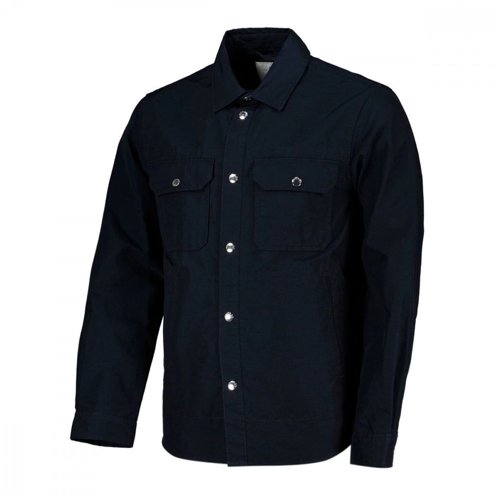 Realizzata in tessuto Eco Ramar, composto da cotone organico e nylon riciclato, con proprietà idrorepellenti e resistenti al vento, consapevolmente priva di PFC, assicura protezione e massima attenzione all’ambiente. Vestibilità regular e design essenziale, è caratterizzata da dettagli ispirati all’abbigliamento da lavoro, come il classico colletto a punta, le tasche con bottone a pressione e i polsini.